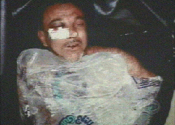 وأضاف كنا مسالمين لأننا لا نملك الأسلحة، لكنهم القوا علينا قنابل الصدمة وأطلقوا علينا الرصاص المطاطي وقتلوا أحدنا برصاص حقيقي عندما ساء الوضع هذه القصة نسوقها لمعتقل امضي مائة يوم في سجن ابو غريب عسي ان يتضمنها تقرير حقوق الانسان الذي سيصدر من امريكا الدولة المحتلة للعراق!! . |